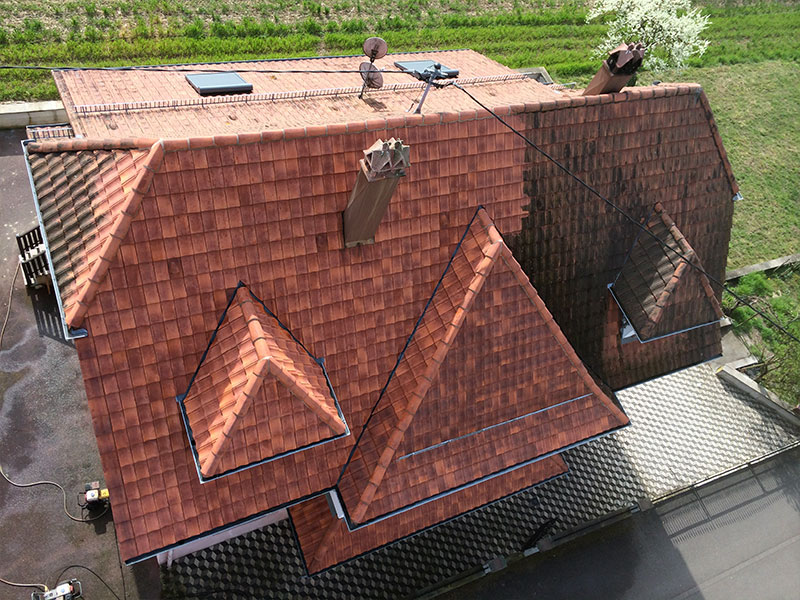 Découvrez les réalisations de lavage de toiture, de démoussage et de traitement des tuiles par hydrofugation.